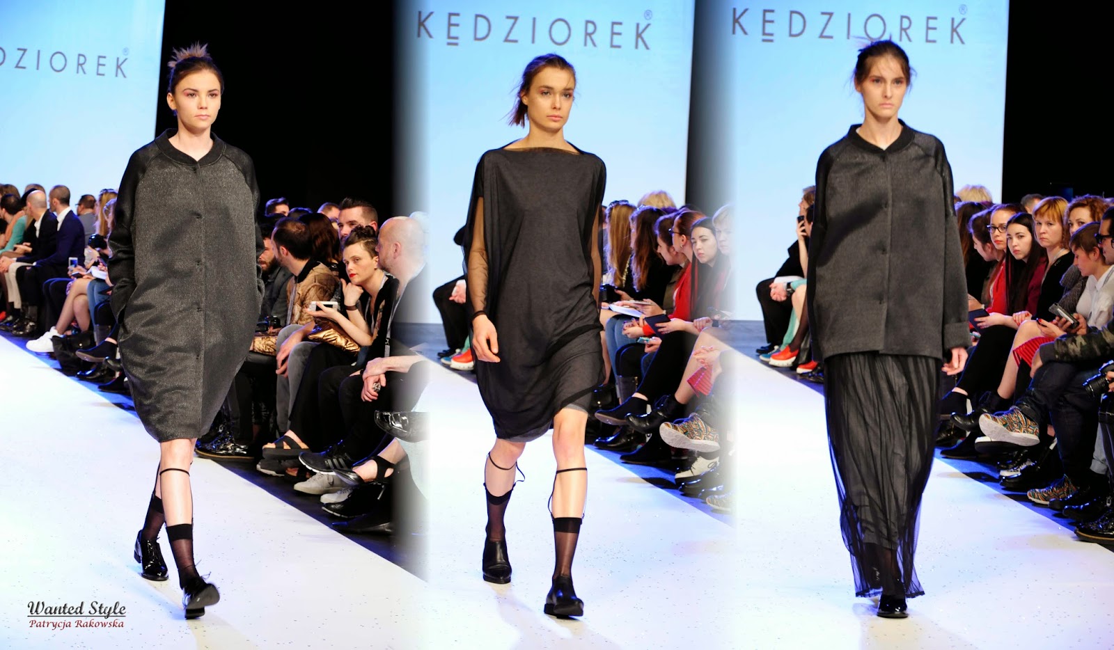 Barwami dominującymi podczas pokazu Kędziorek była głównie czerń, szarość, srebro i róż. Kolekcja bardzo ciekawa. Dużo wygody i oversizu. Fajne, lekkie materiały i kobiece fasony. Kilka rzeczy chętnie bym zaadoptowała, w szczególności czarny płaszcz z siatki. :)